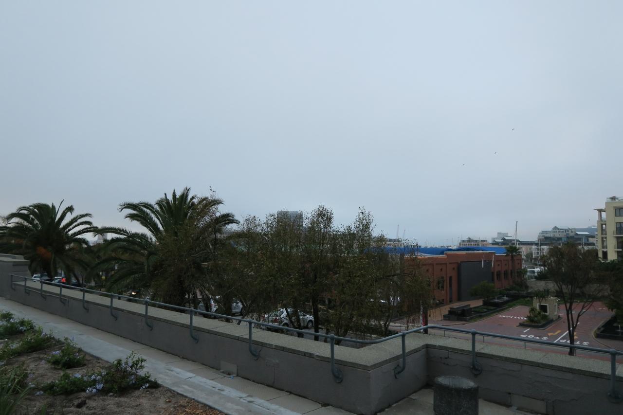 昨日からずーっと霧がかっています。本当はこの方向にテーブルマウンテンが見えるそうですが、全く見えません。 -