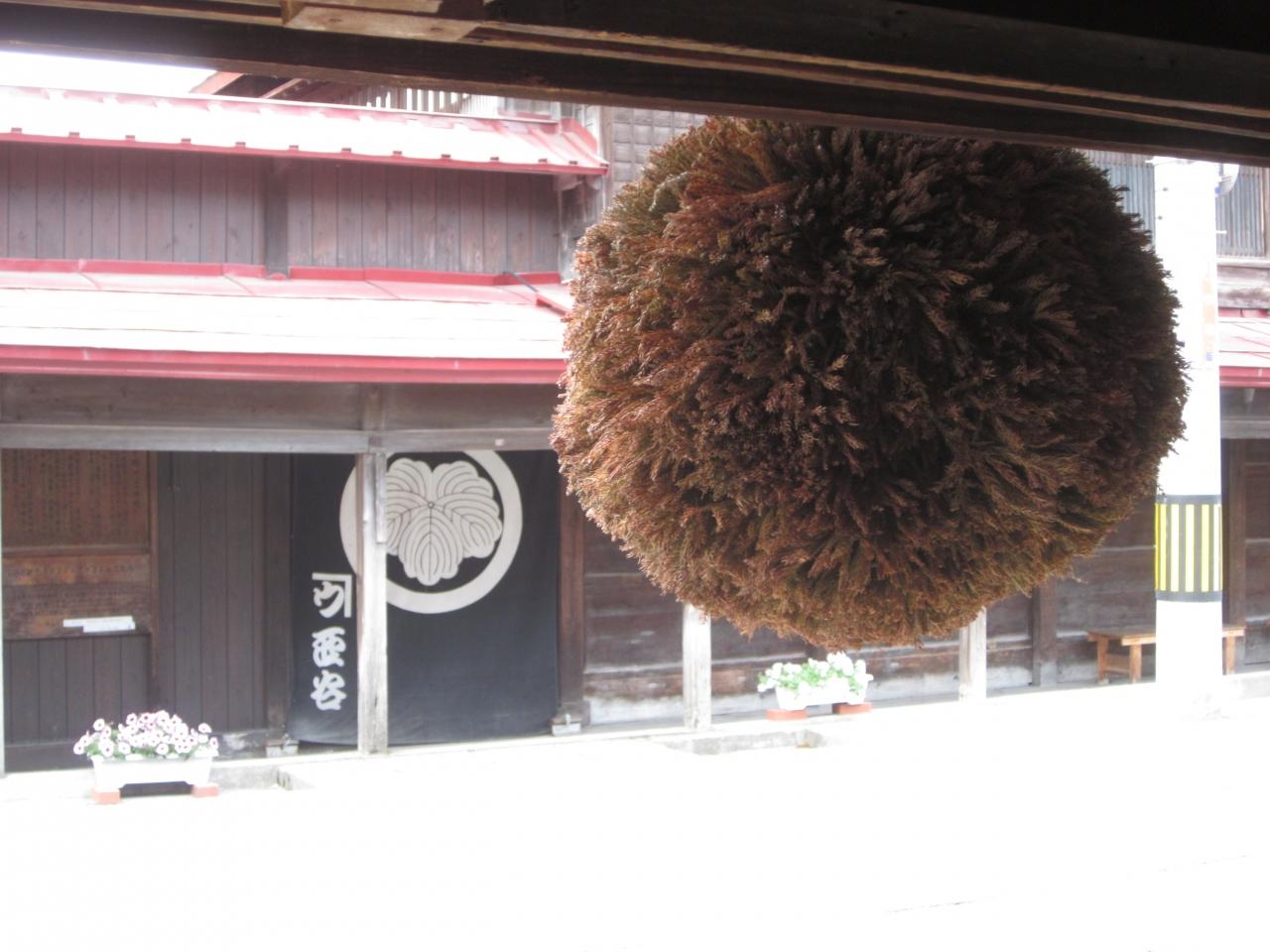 この小さい杉玉はこみせ通りの軒下にぶら下がってました~、