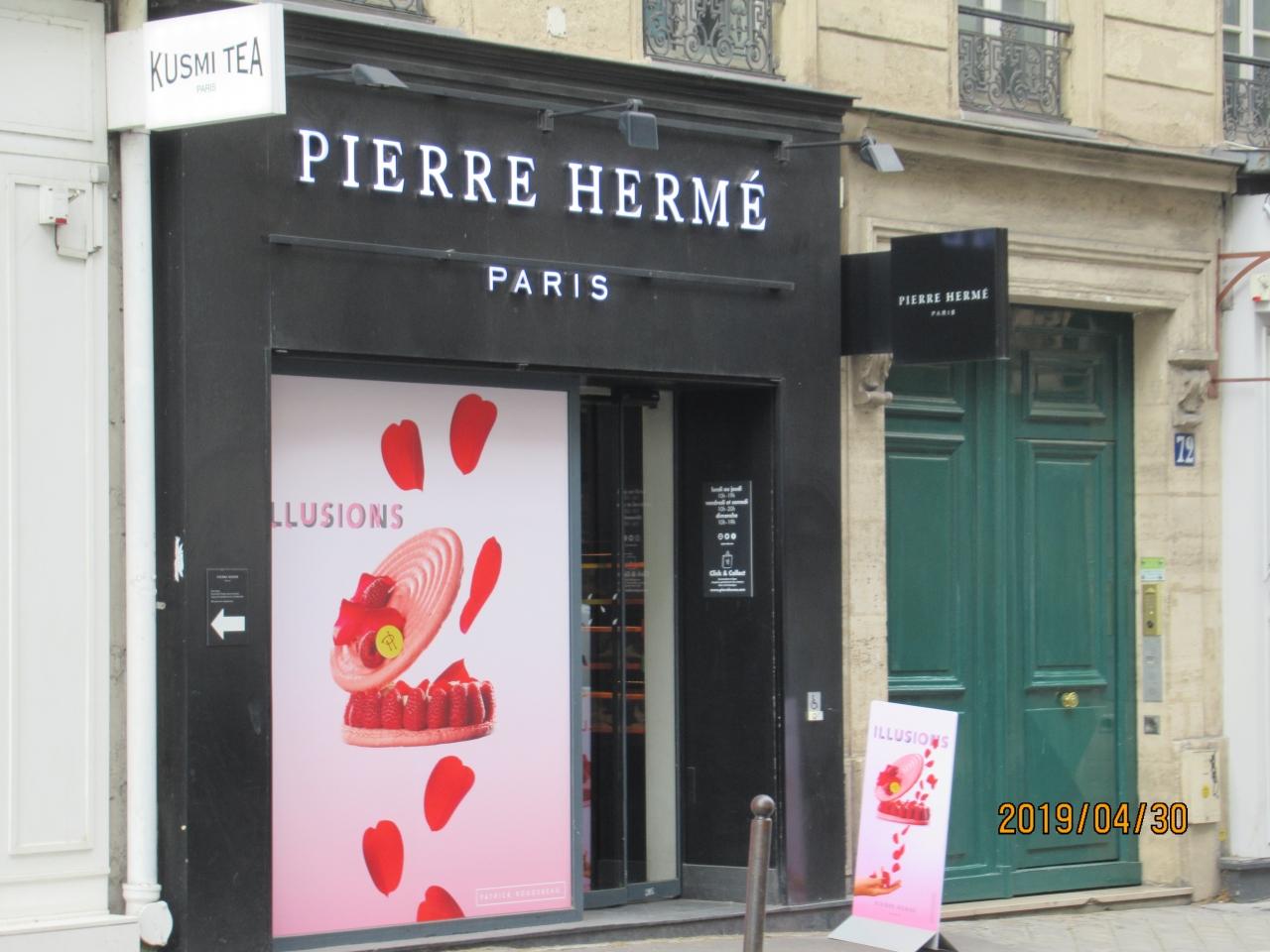 今日は午前中から買い物。まずはピエールエルメにクロワッサンを買いに来ました。混んでいるのかと思ったら、お客さんは誰もいなく、心配していたクロワッサンもまだありました。店員さんが声をかけてくれて、クロワッサンと親に頼まれたマカロンを購入。
