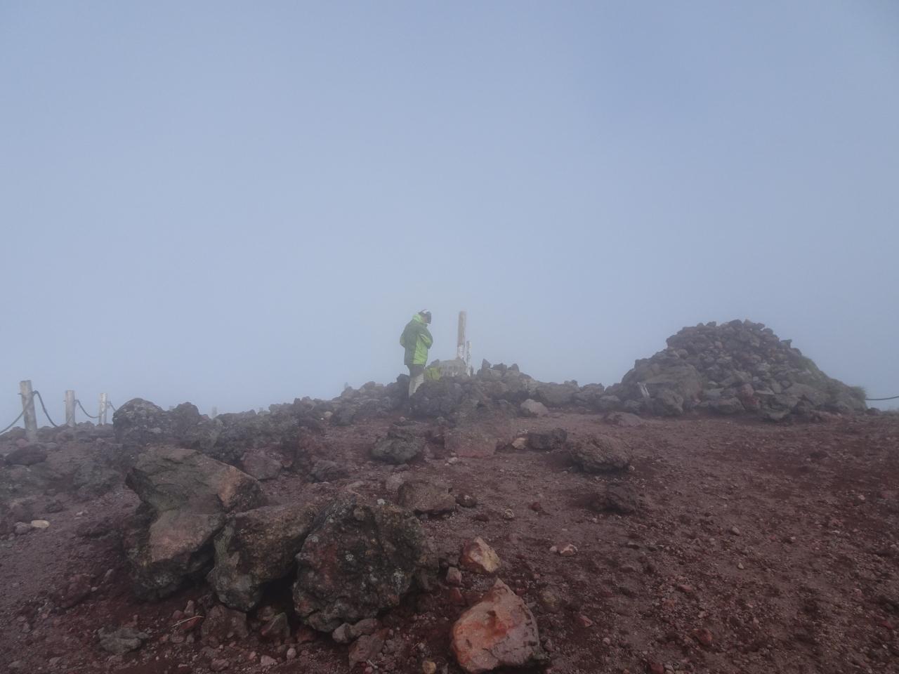 まずは秋田駒ヶ岳最高峰の男女岳(おなめだけ)に向かいましたが濃霧。。。