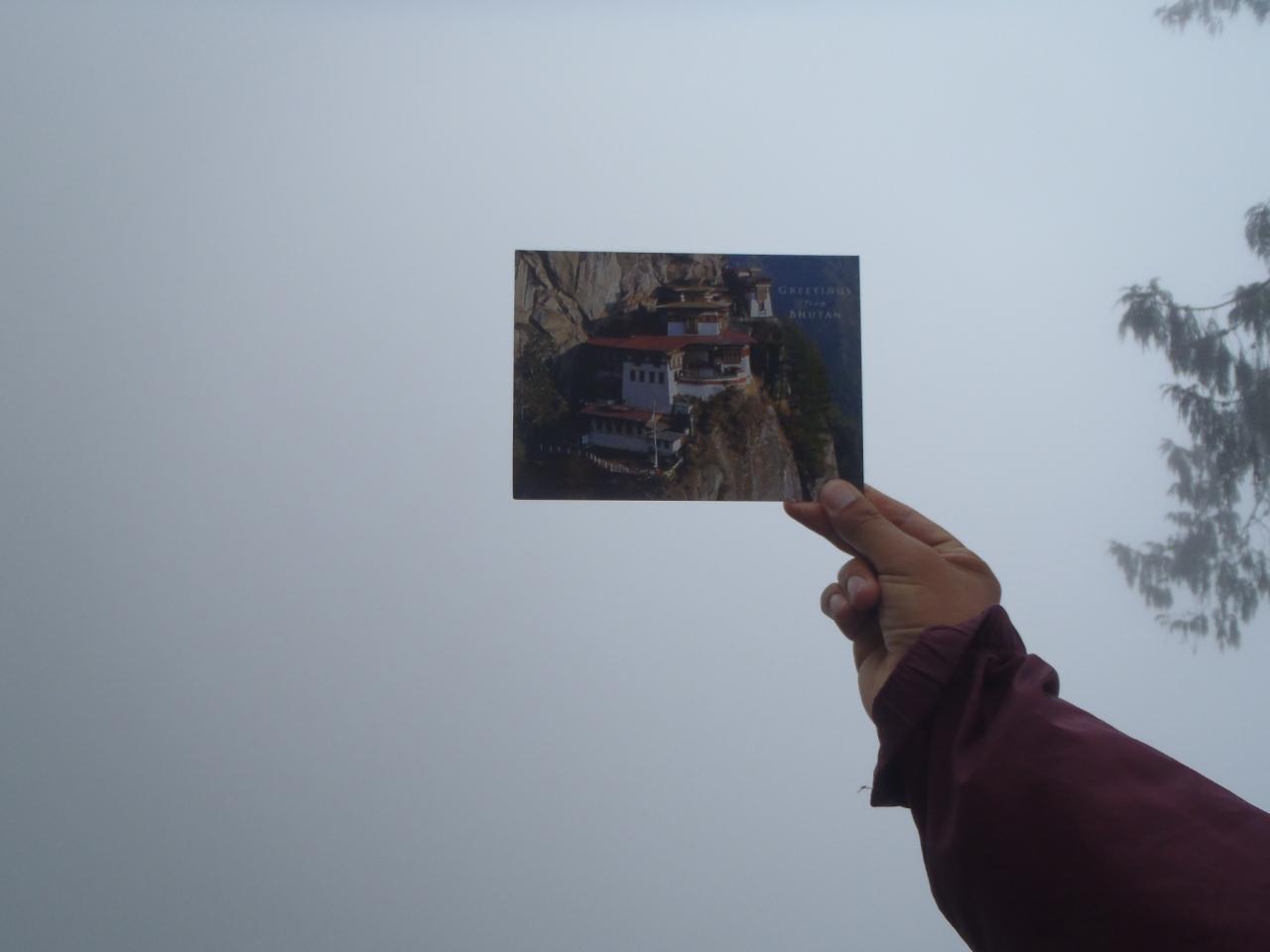 視界ゼロの中、本当はこんな風に見えるはずだ!!!!と「ネットでデジャブー」を見てしまった景色を事前に買い込んだ絵葉書で再現したら、ガイドのチミさんにも大受けしました。次回から「この技」は霧の日に使わせてもらうとのこと!