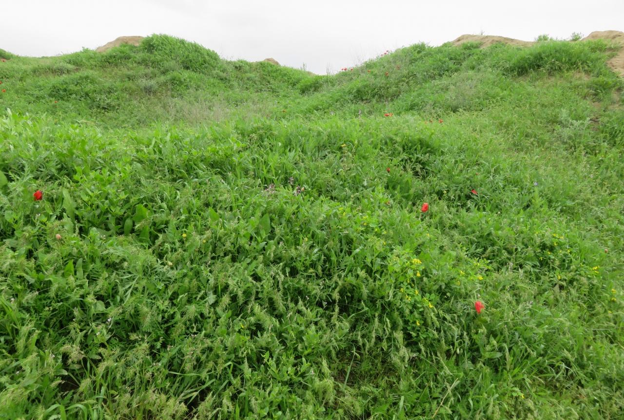 同じく、名前が分からない薄紫の野の花の光景です。タジキスタンに国花はありませんが、カルミア 、ヘリコニア、シクラメン、ワタなどの花が人気が高いようです。右下に一輪だけポピーの赤い花がありました。ポピーが国花になってもよさそうです。ネットで検索しましたら、赤と黒のポピーがアルバニア、赤いポピーがポーランドの国花でした。