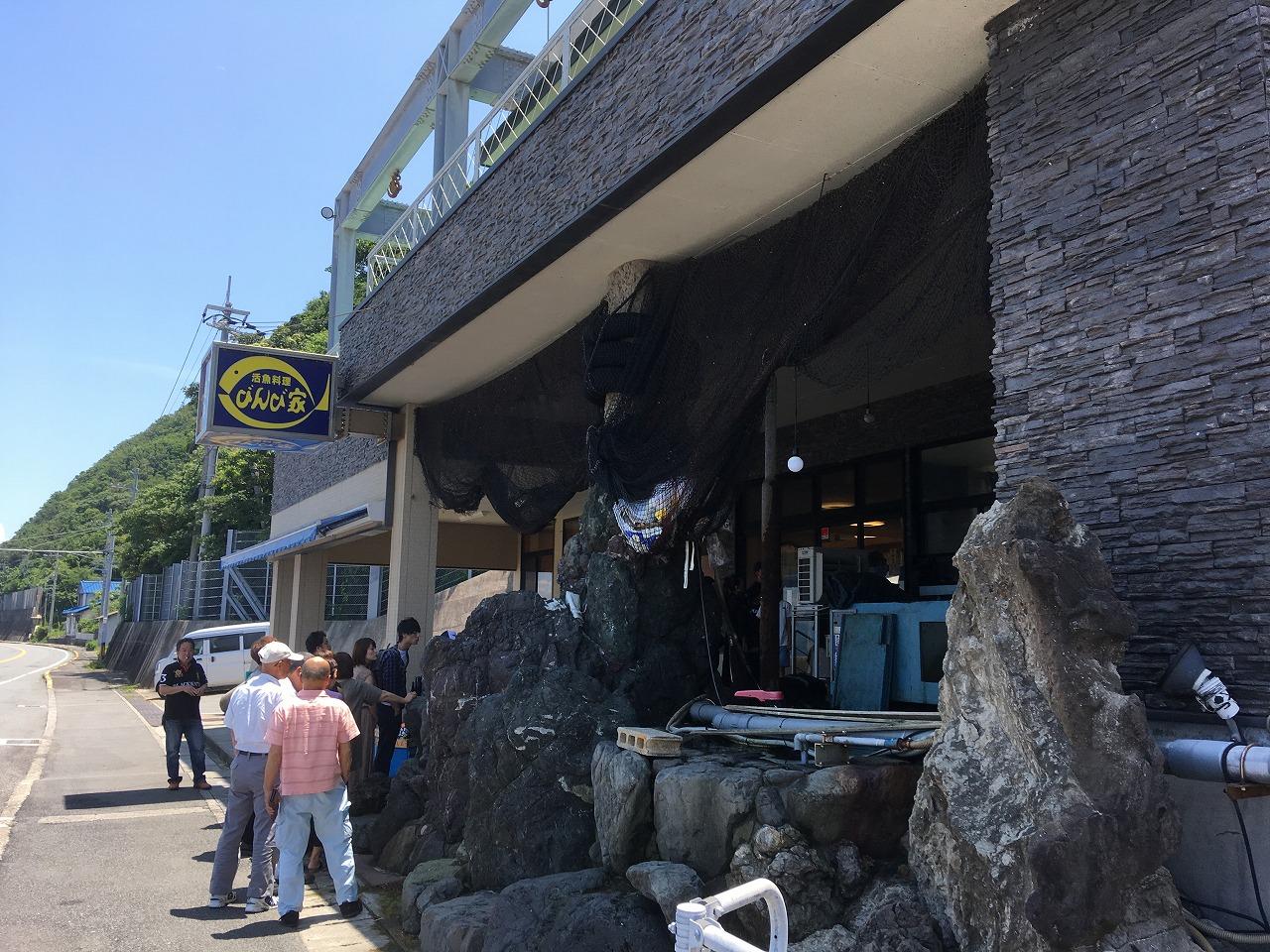 7月7日(日)家をマイカーで出発し、神戸淡路鳴門自動車道を走って鳴門北ICでおり、新鮮なお魚がいただける有名なびんび家で昼食。
