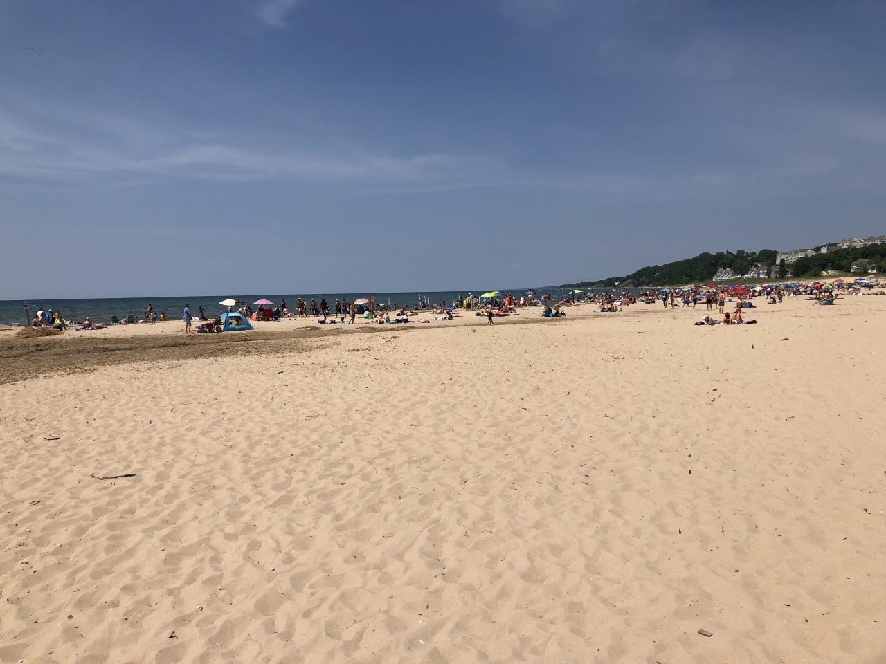 砂浜は海水浴場のような大騒ぎ。ここはミシガン湖という湖です。