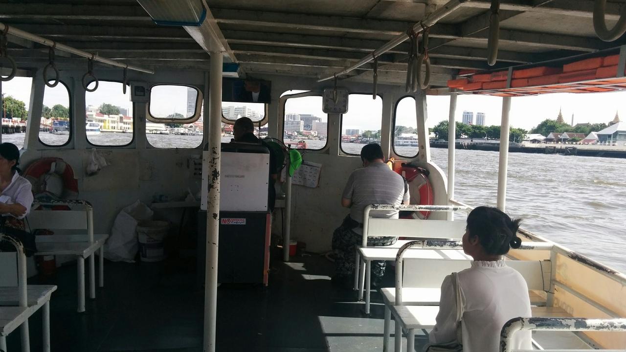 川の渡し船でティアン桟橋へ。4バーツ。