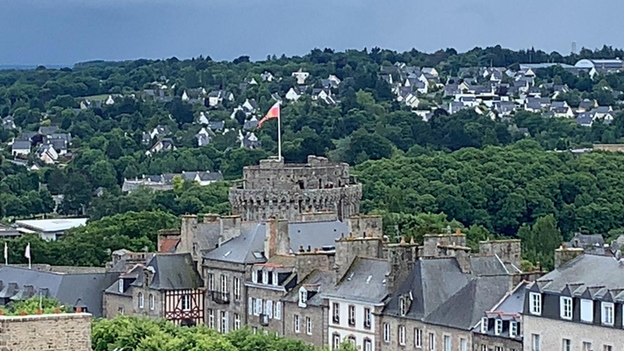 息を切らして登ること数分、屋上に到着。中世の町が一望できるじゃない!見えているのはBasilique Saint-Sauveur de Dinan。