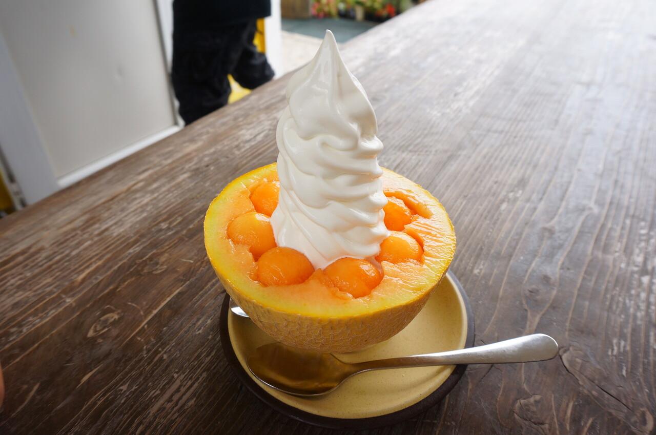 ソフトクリームの作るの上手!そしてメロンを丸くかたどっているのが可愛いので映えますよね^^