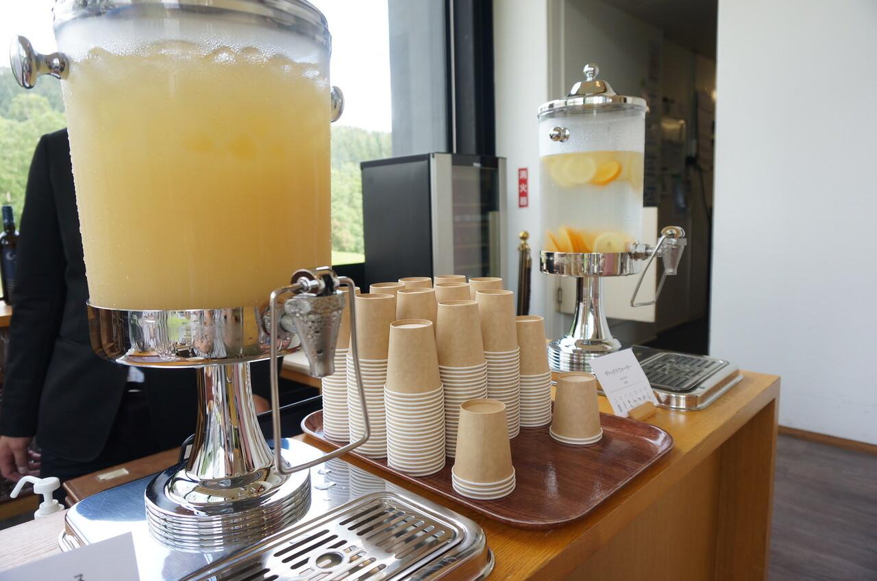 一番奥に飲み物が置いてあります。