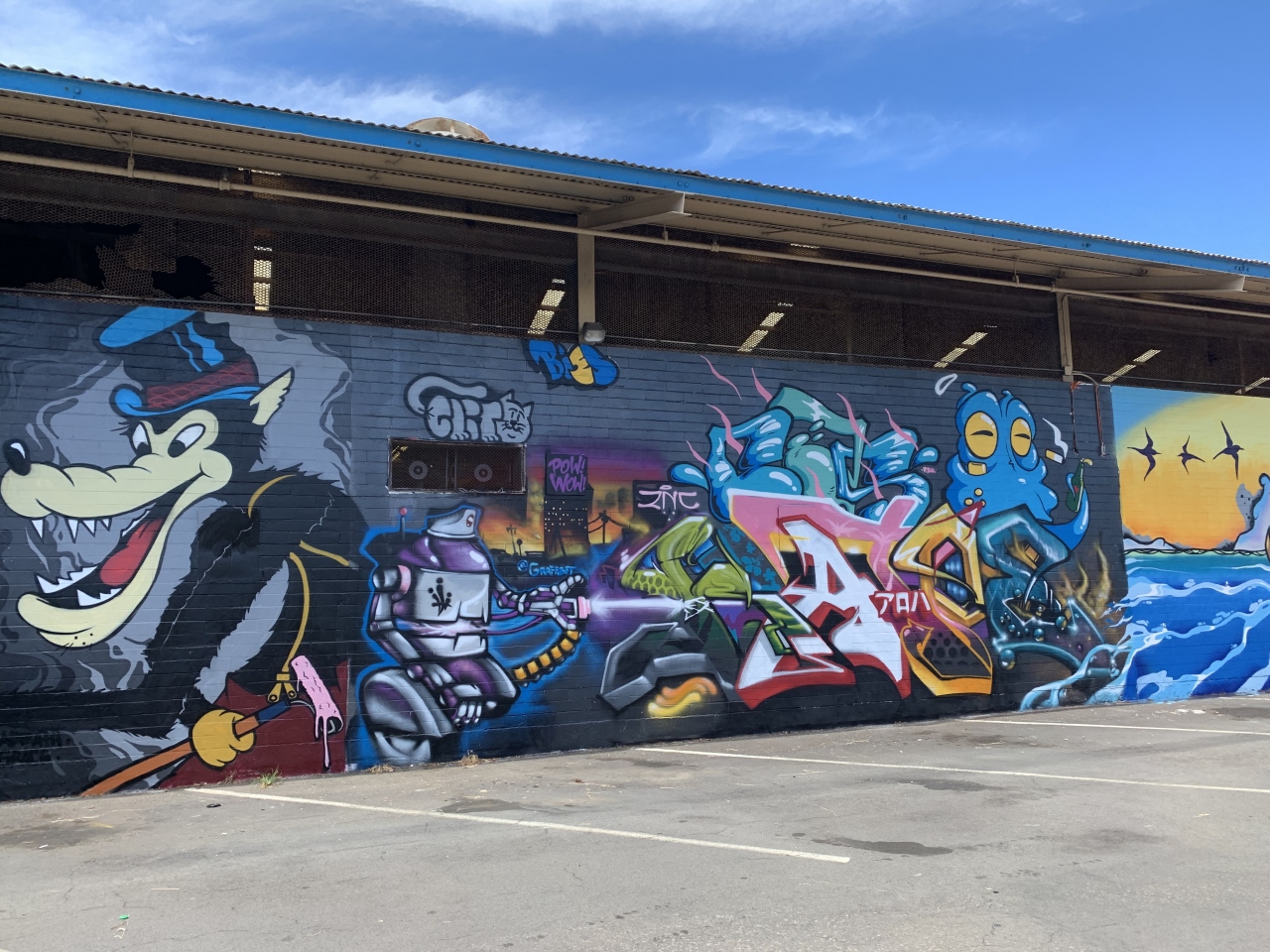 昼食も終わりメインイベントのウォールアート見学です。付近を車で周り見所と入ってはいけない場所を教えてもらい見学スタートです。