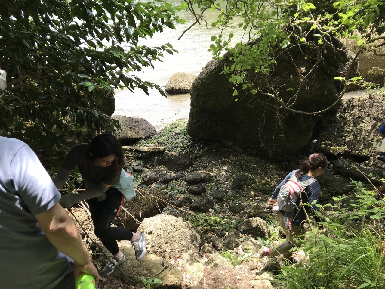 崖を降りる。