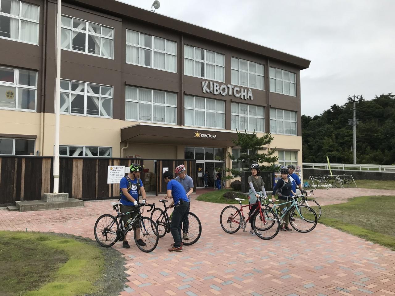 翌朝9時過ぎに宿泊先の「KIBOTCHA」の外に出ると、そらうみサイクリングのTシャツを来たスタッフの方を見かけたので、声をかけた。
