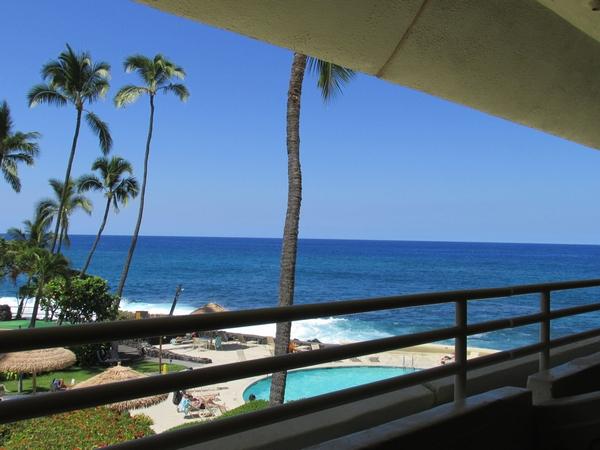 滞在中のロイヤルコナリゾートホテルのラナイでコーヒーを飲みながらハワイの朝をを噛み締めます。名残り惜しいなぁ。
