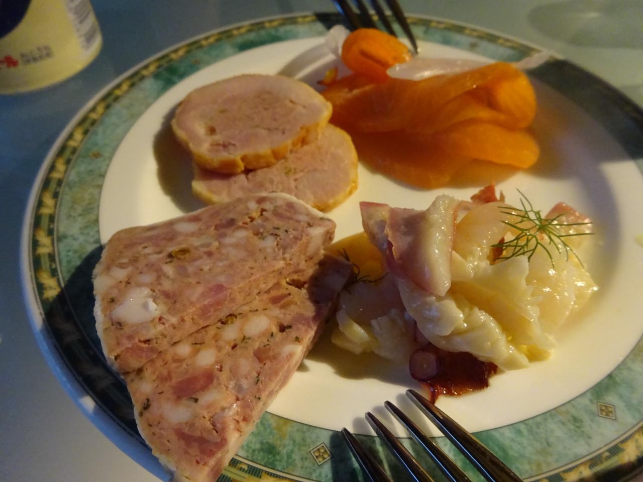 昨日とほぼ同じ食べ物ですが、揚げた魚のマリネが追加されていました。
