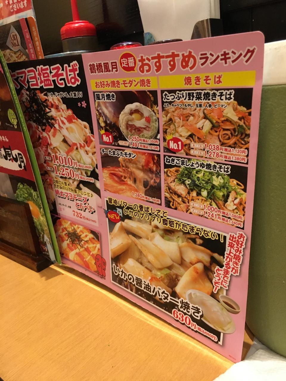 まずは腹ごしらえ。大阪ではおなじみの「風月」で、お好み焼きなどを食べた。