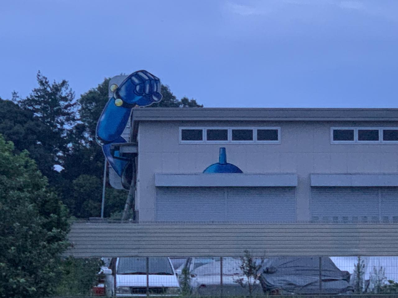 青野さんのすぐ近く、鉄人28号を描いた倉庫が見えました。