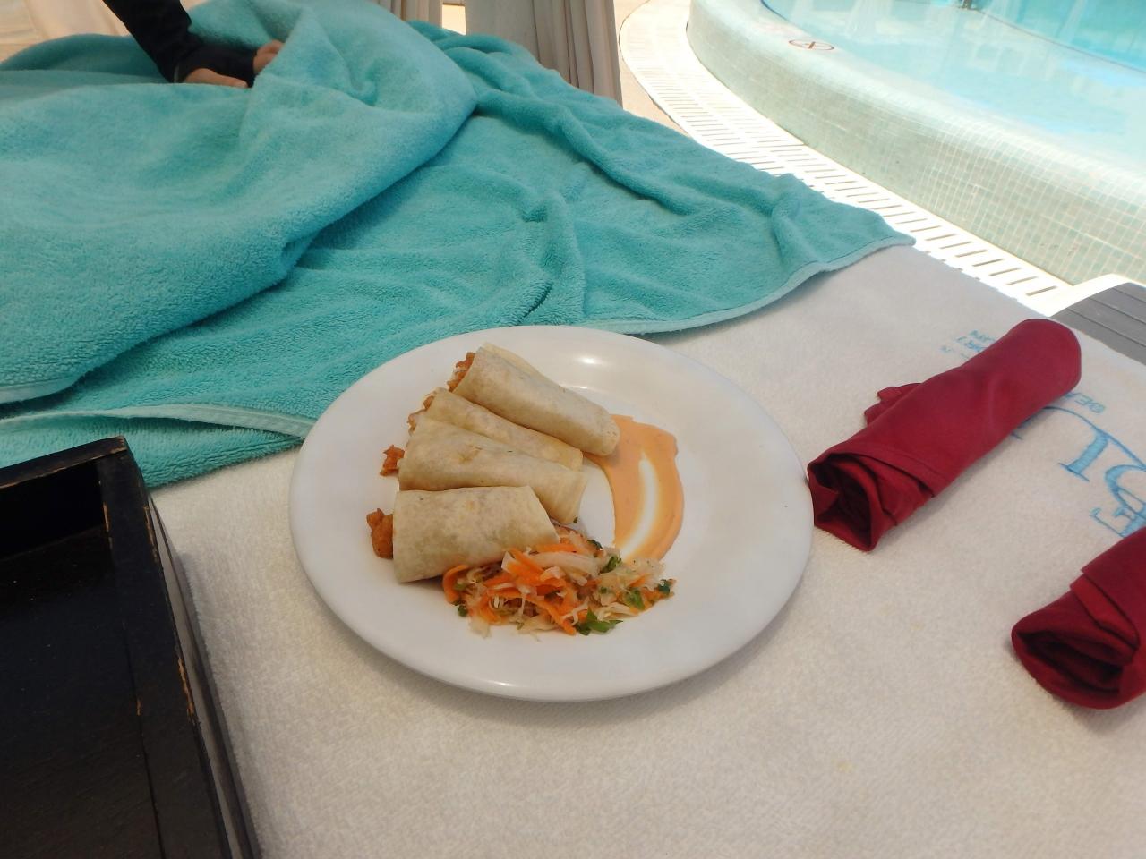 プールのカバナは軽食が注文できるようだったので、担当のお姉さんに聞いてみたらメニューを見せてくれました。
