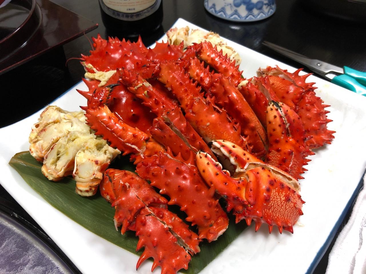根室と言えば花咲ガニです。茹で加減・塩加減がバツグンです。うん、美味い!