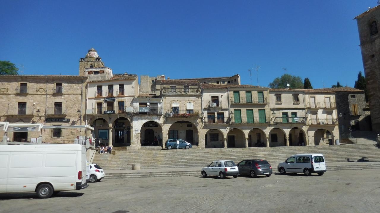 ・こも街は素晴らしかった!荒涼としたエストレマドーラの大地の丘にあるこの街から16世紀に多くのコンキスタドーレスや冒険家が新大陸を目指した。インカ帝国を滅ぼしたピサロ、アマゾン川を探検したフランシス デ オレリャナ等々。彼らは新大陸で原住民を騙したり虐殺したりして多くの金銀財宝を本国に持ち帰った。街に残る豪壮な石の邸宅はその富で築かれたという。街の中心の広場には槍を持ったピサロの銅像が建っている。
