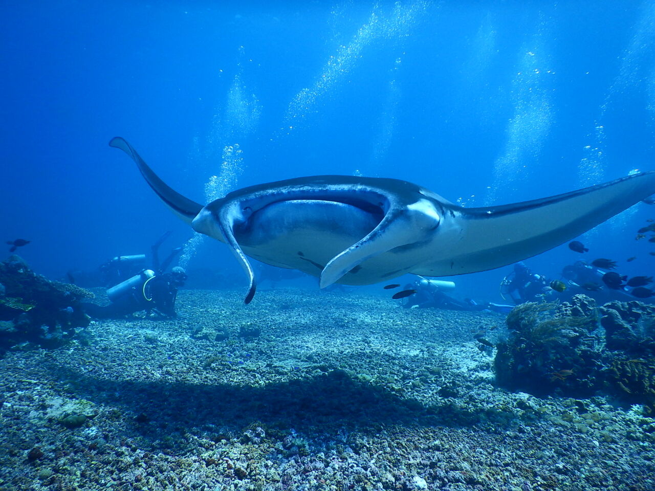 2本目はドリフトダイブ。マンタスポットに移動してさっそく大きなマンタが見れた。