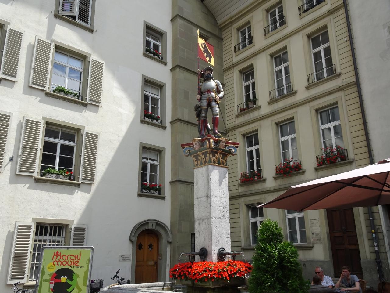 旧市街には、たくさんの泉(水飲み場)があり、まずは「正義の女神の泉」。