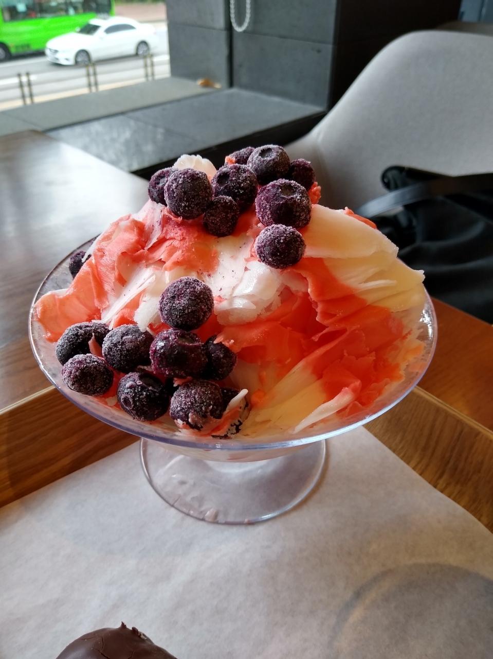 パリバケットで休憩。イチゴのかき氷はイチゴ品切れのため、ブルーベリー。かき氷はいまいち。