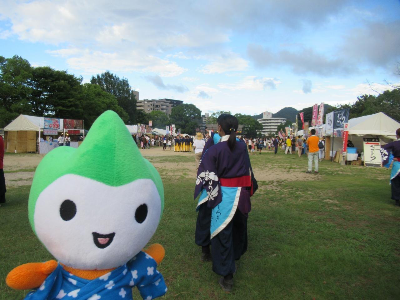 山口健康豆腐と銘打った、なかみち屋さんは宇部からの出店だそうで、ノリのいいお兄さんがちょるると一緒に写ってくださいました。