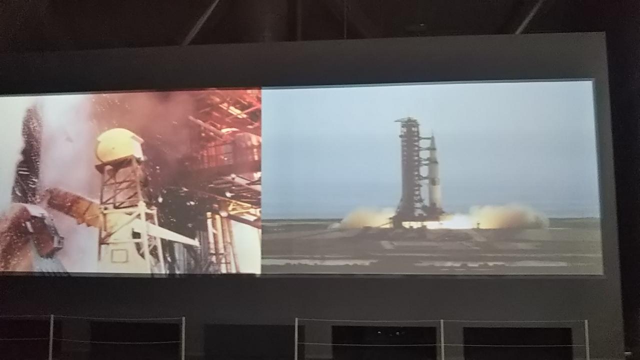 大きなスクリーンに歴代のロケットの発射場面や、宇宙での活動についての動画が映し出されます。