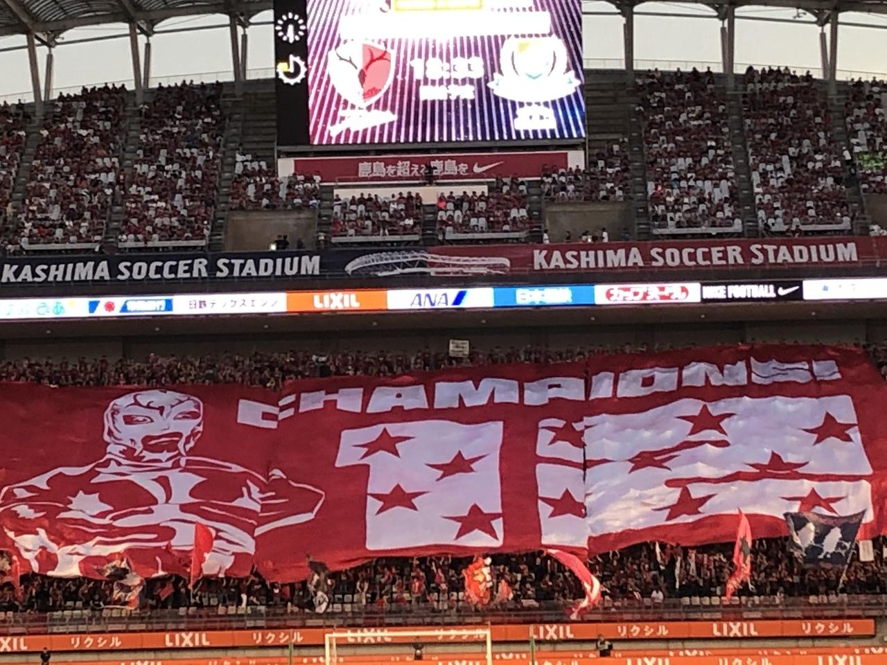 昨年から、試合前の鹿島のビッグフラッグが変わったんですよね。