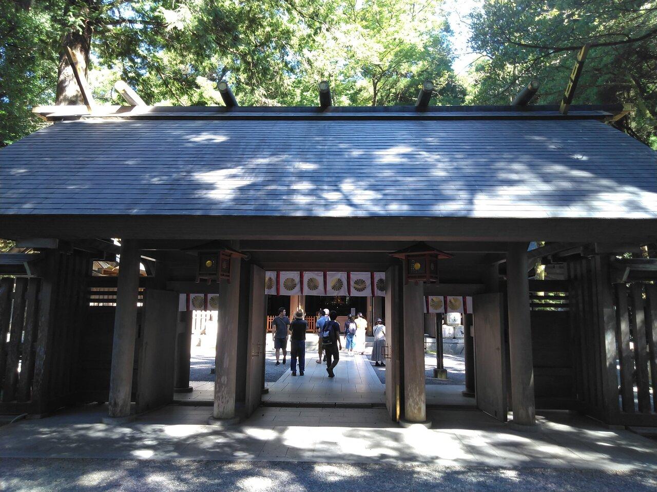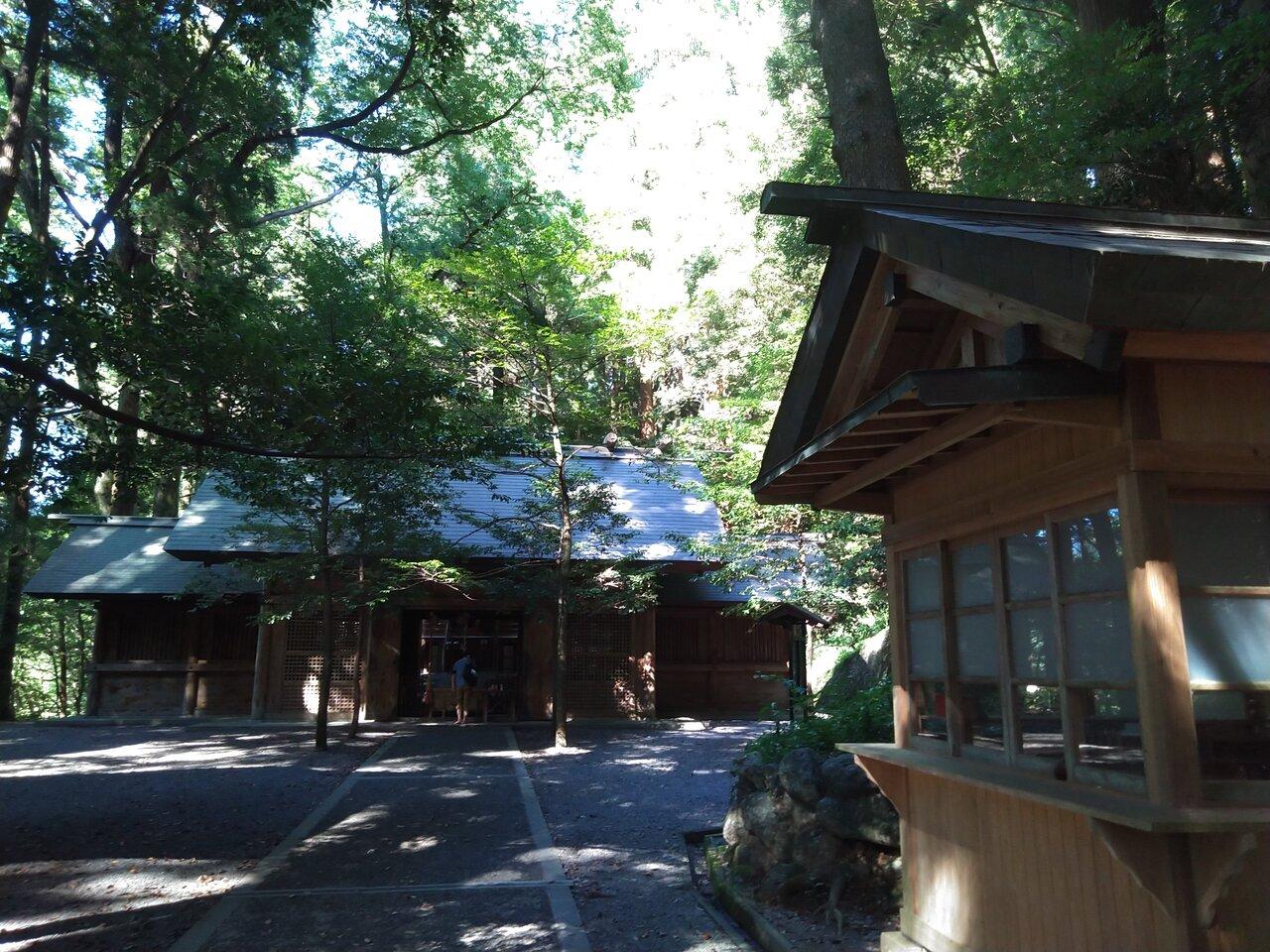 天岩戸神社西本宮の屋根です。本殿から左に七本杉への道があります。