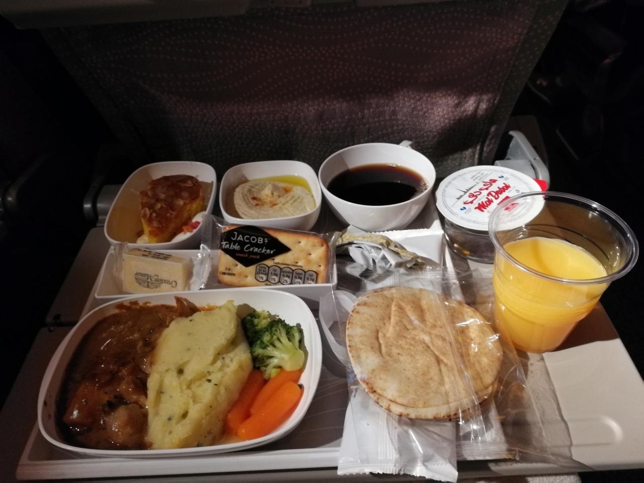 う~ん、不味いわけではない、決して。でも、中東系のエアラインで出される機内食の「感動」の美味しさからは程遠い。