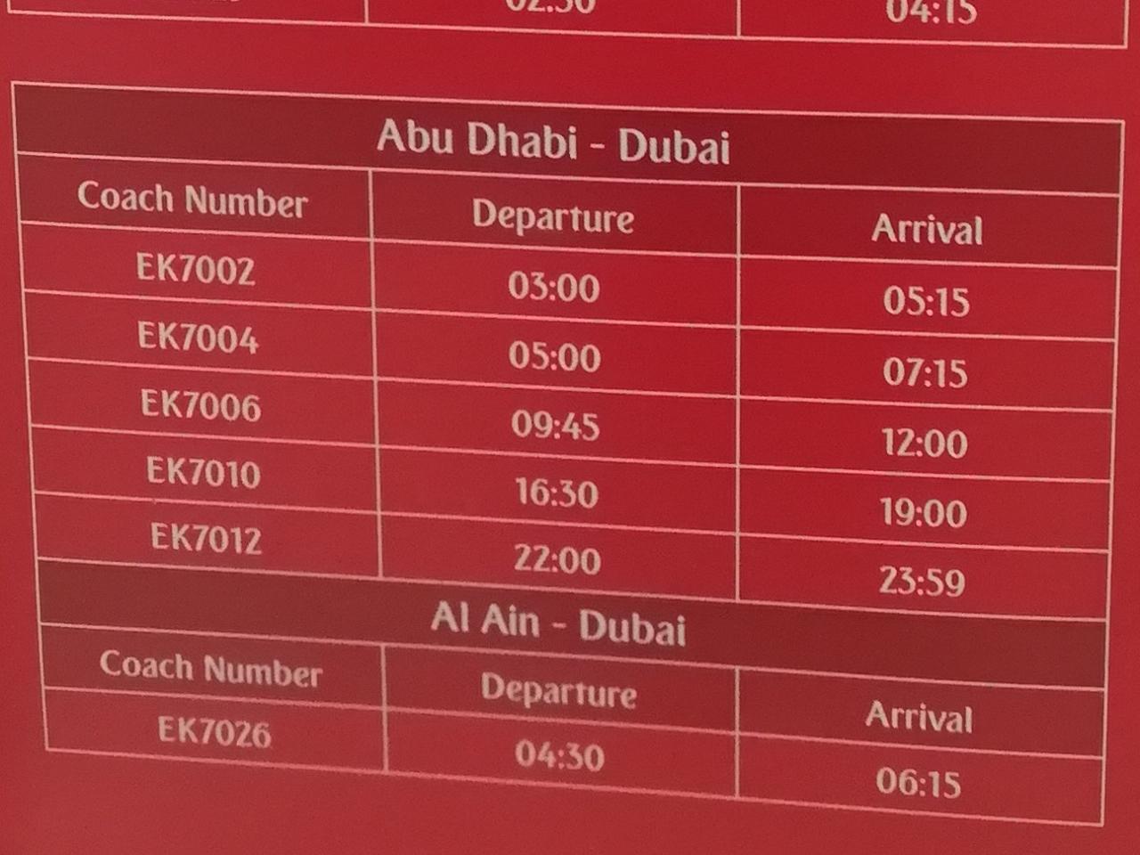 しかし、今写真を良く見ると、ここは「アブダビ→ドバイ」の欄。