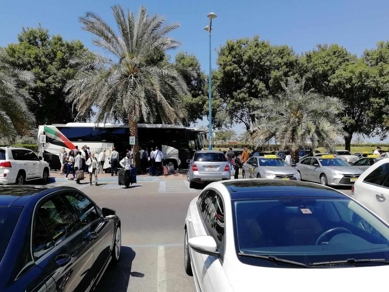 エミレーツ便で到着すると、ドバイ空港-アブダビのエミレーツオフィス間を無料バスで運んでくれます。このバス、乗車するまで数々のトラップがあります。