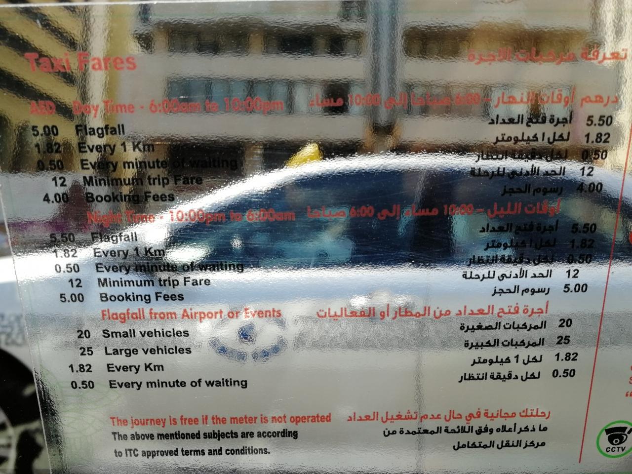 確か、28.5AED位だったと思う。端数はチップに取られる、と事前に聞いていたから、そのつもりだったのに、キチンと端数までお釣りを用意してくれました。
