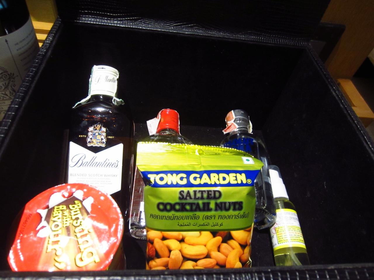 カクテルタイムはピーナツが提供されます。何度かいただいた、スパークリングウォーター。