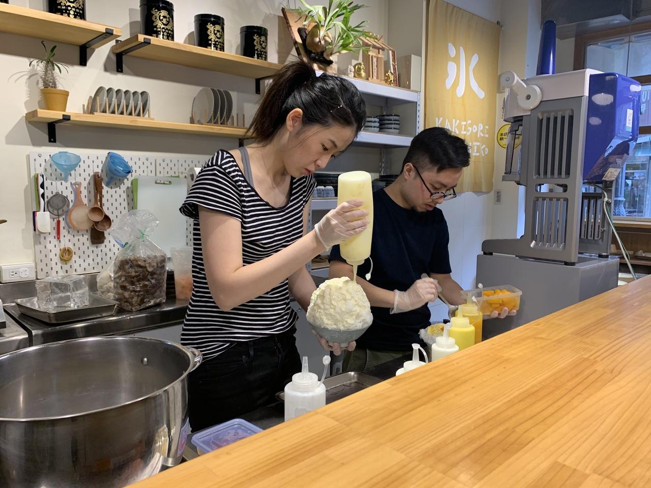かき氷というよりケーキ作り。