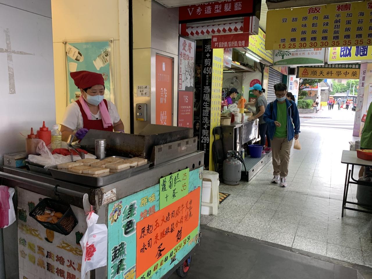 赤いエプロンのおばちゃんのお店で蛋餅チーズ入り