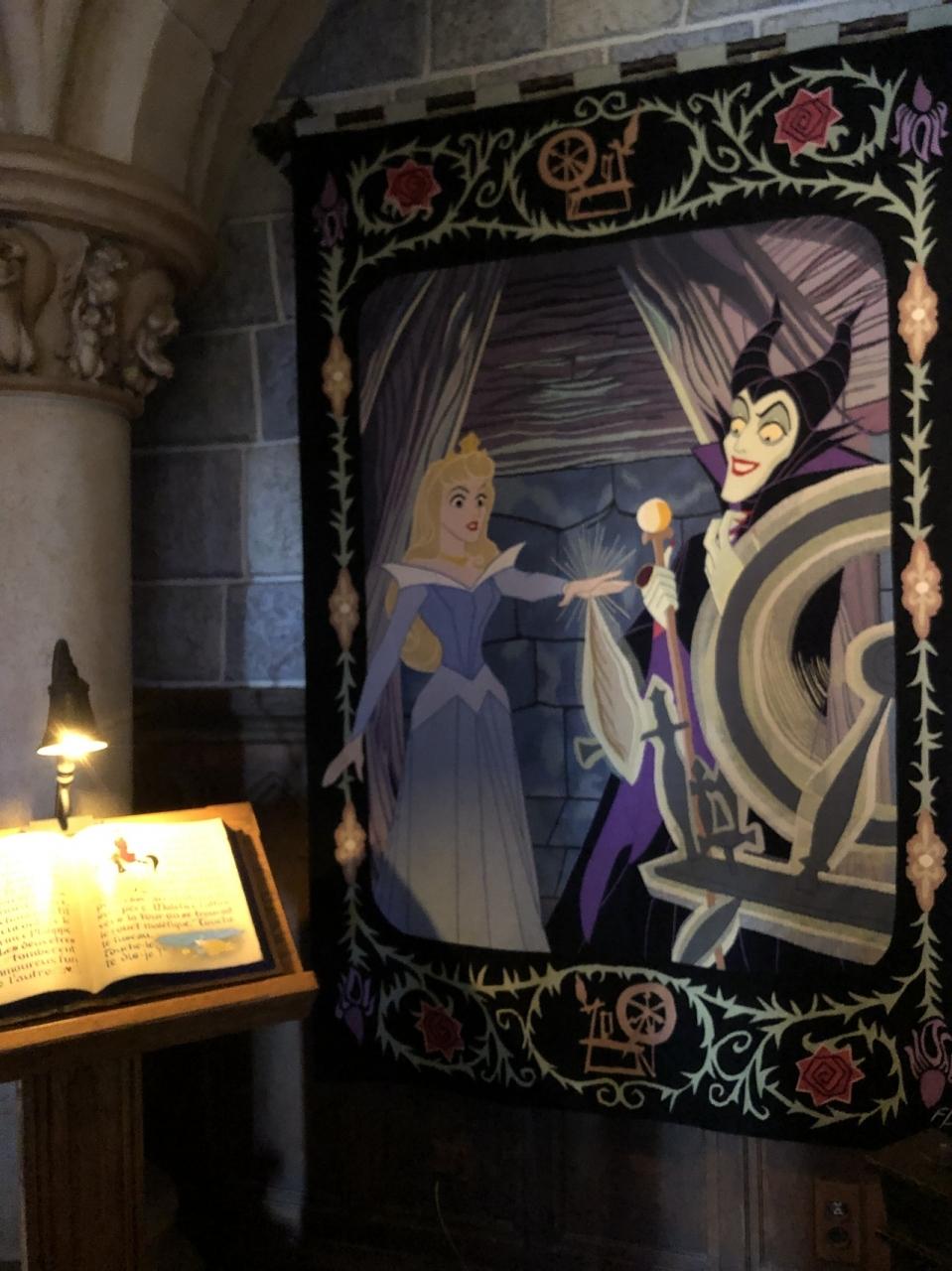 お城の中に眠りの森の美女のお話しの場面が再現されています