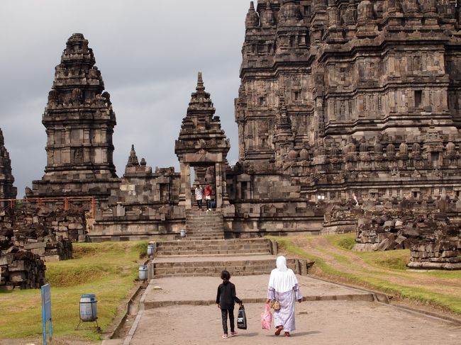 シヴァ寺院の入口まで登って隣の寺院を眺めると、入り口がずっと下に見えます。 シヴァ寺院は、ロロ・ジョングラン寺院群最大の建物で、47mあるそうだが、人の背丈を基準にすると100m近いのでは?と感じたりするほどでした。
