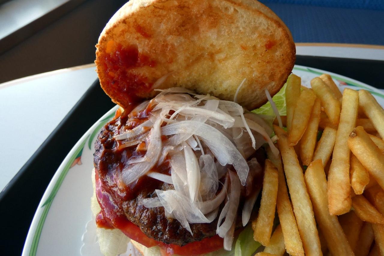 ボリュームたっぷりのハンバーガー
