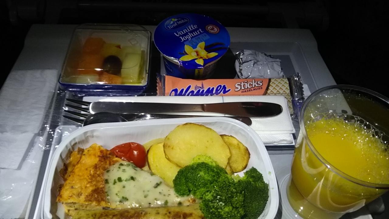 ウィーン時間で2130頃に朝食。完全に時差ボケがスタートです(笑)。でもお腹は減っていますのでディナー替わりに食べます。フリッタータとポークソーセージです。デザートのヨーグルトとウエハースがまだオーストリアを感じさせてくれるのが嬉しい!おいしく頂きました。