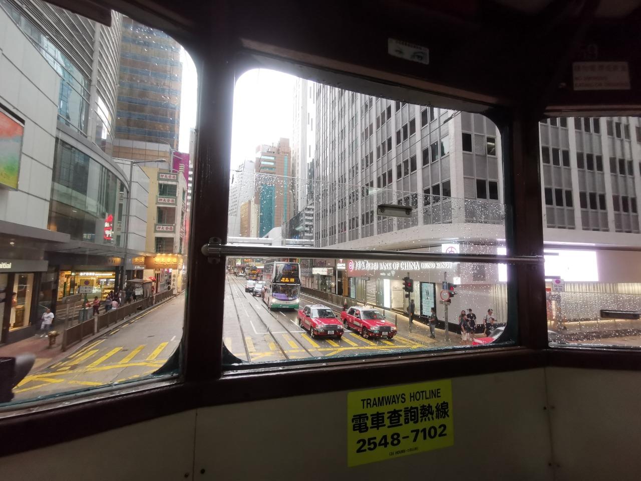 香港駅まで歩く間にトラム道を横切る最後のチャンス、ここで会えたら奇跡だよなと思ったら、なんと、会えた!!
