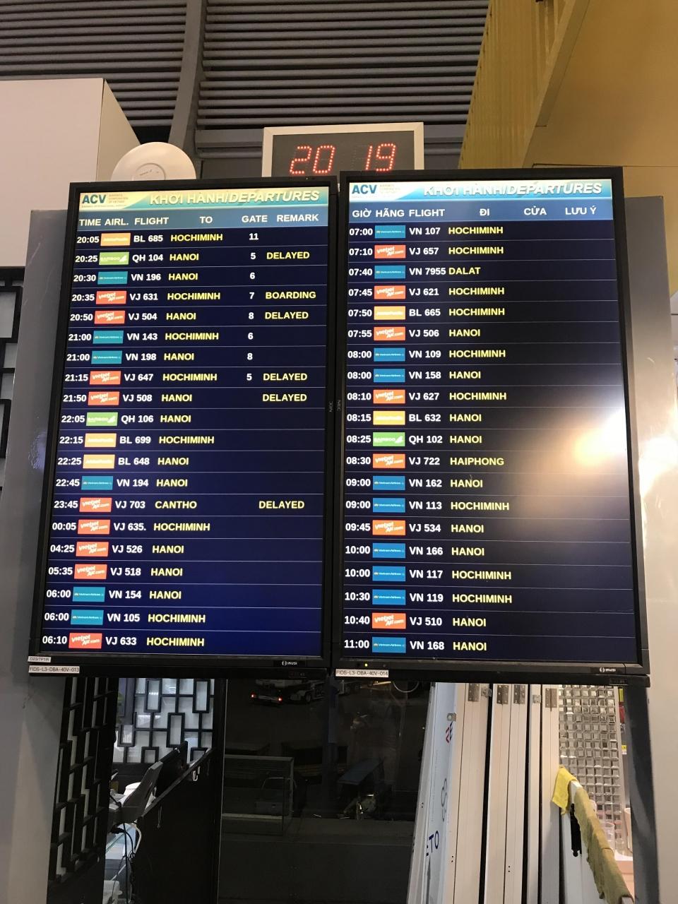 delayed の文字はほとんどがベトジェット。ベトナム航空にしておいて良かった。
