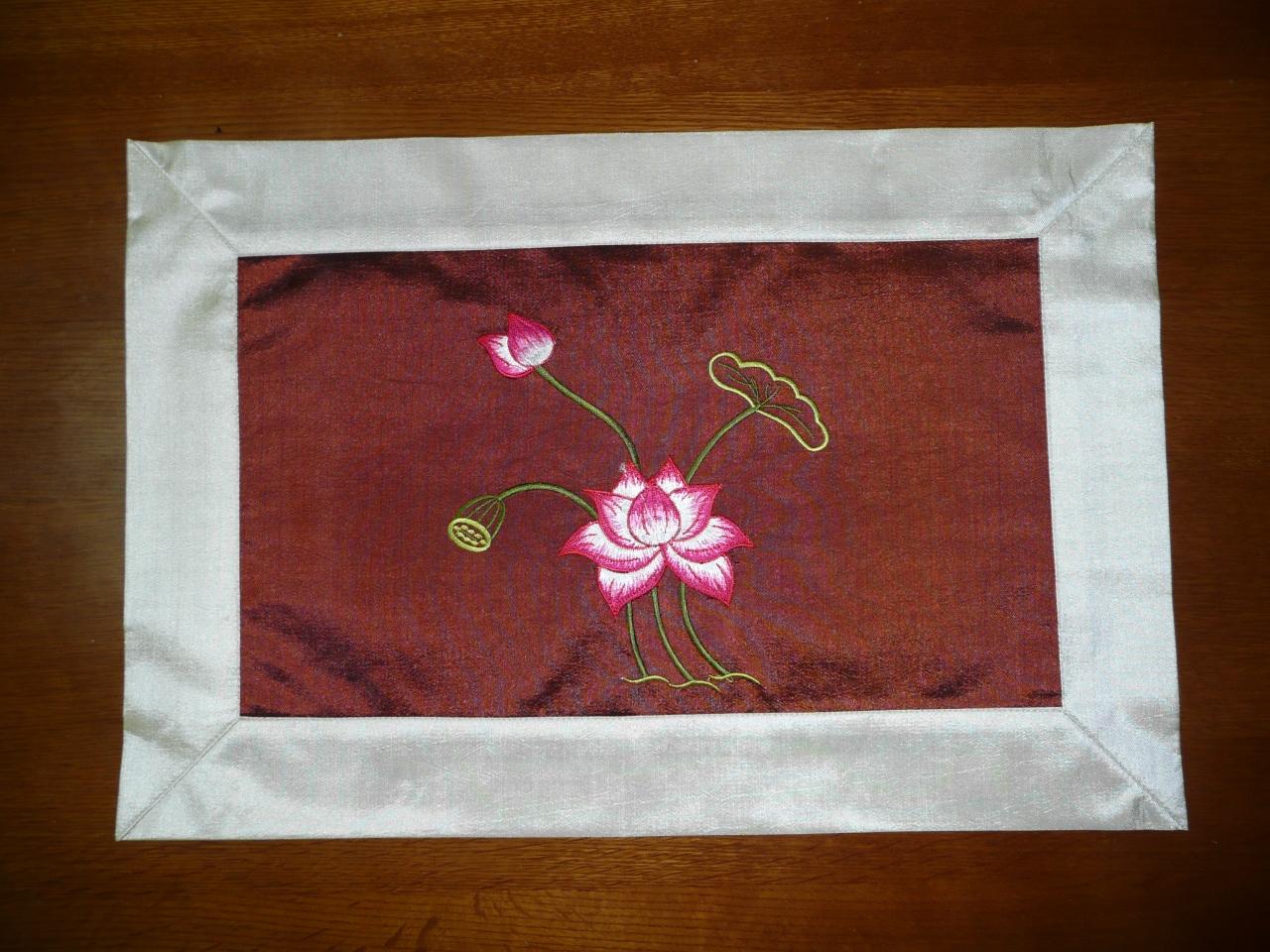 何気なく見ていたら、刺繍付きのランチョンマットを発見!!こういうのを探していたんだよ!大きさも460mm×300mmとベストサイズ。この光沢はシルク?(と筆者は思ってる)こんなところで見つかるなんて、ラッキー! だけどベトナムドン、在庫処分してほとんど残ってないんだよな。