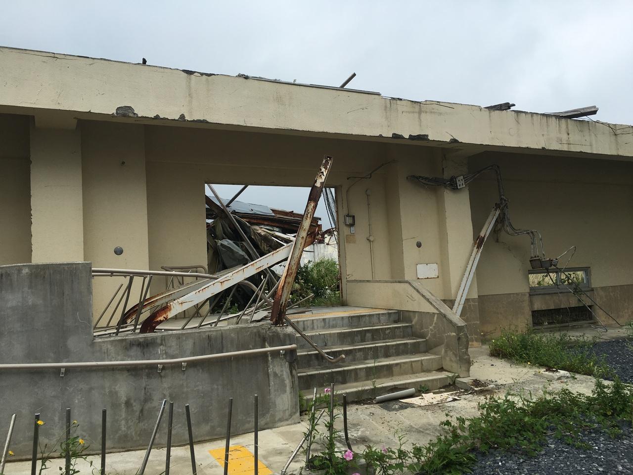 屋根がなくなったというレベルじゃなくて、外側だけかろうじて残った…みたいな感じ。 -