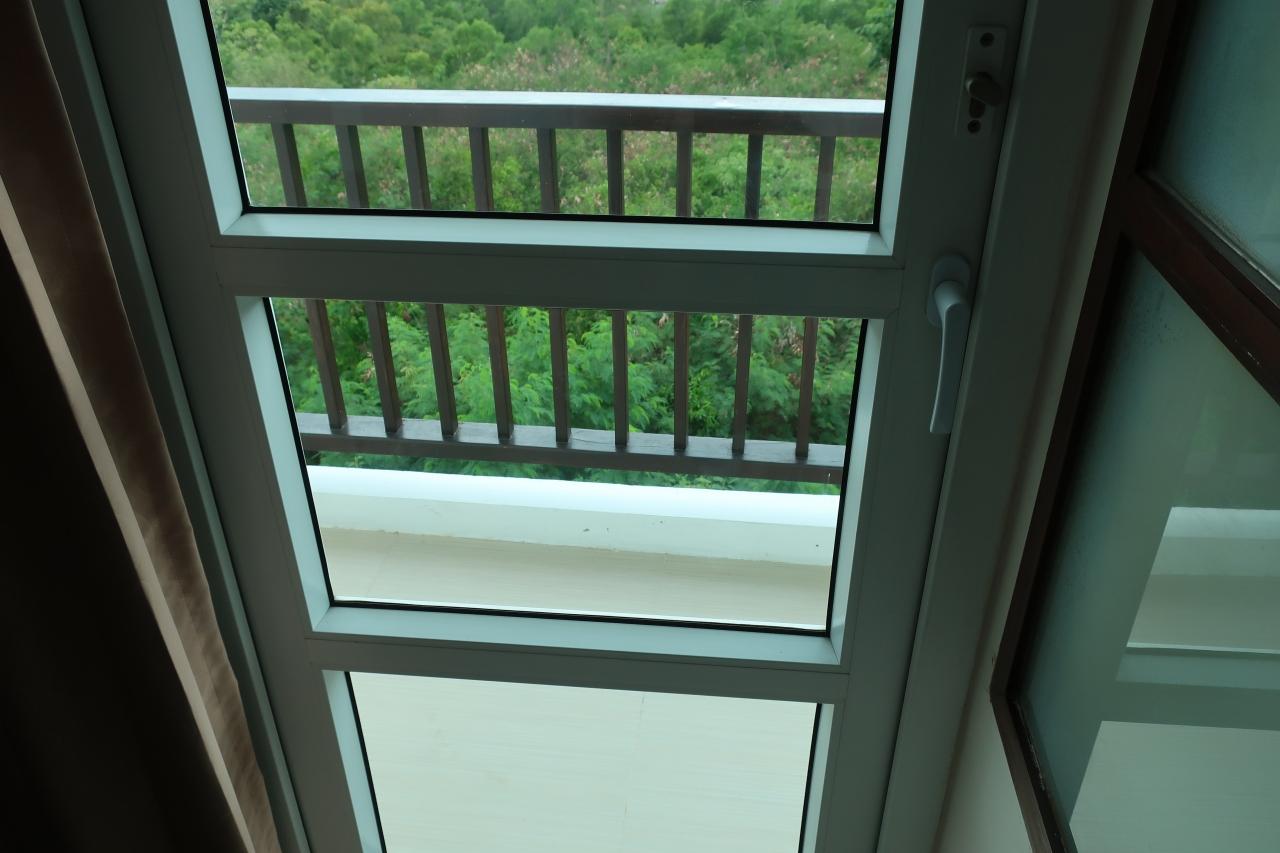 カーテンを開けると「バルコニー」への扉が・・・。