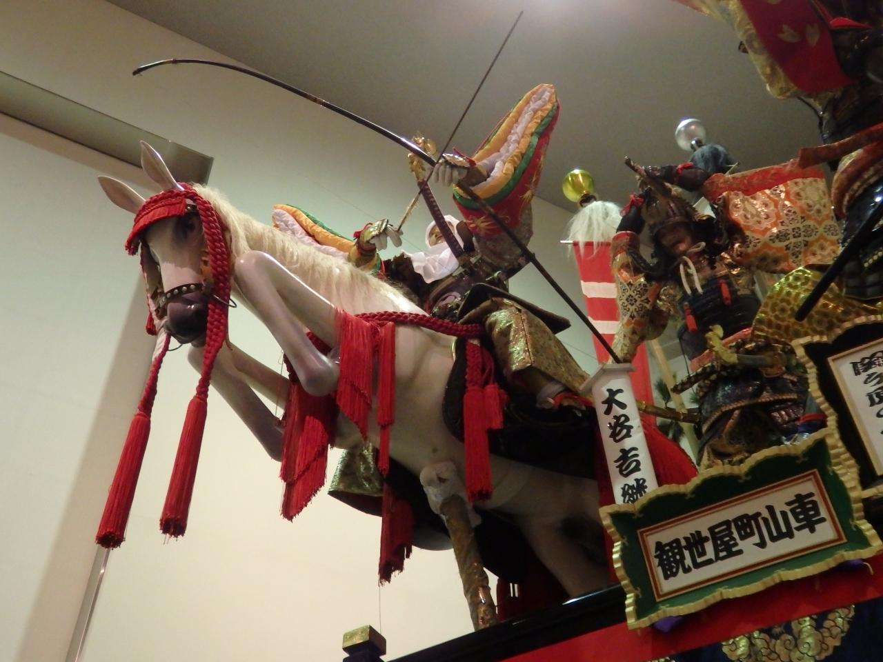 敦賀まつりで巡行する山車3基を展示。