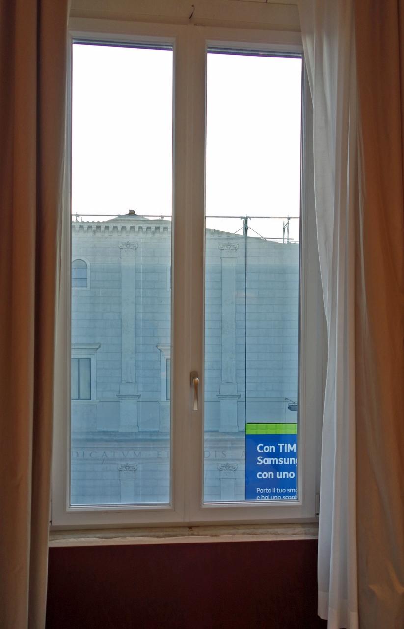 窓からの眺めですが、隣が教会なのですが、改装中で仮囲いがしてあり、残念な眺めです。