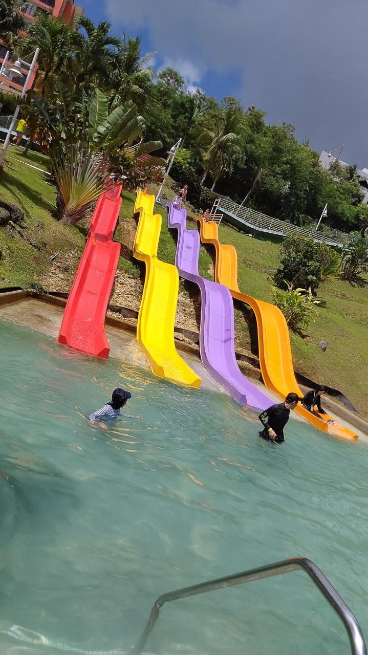 ホテルに宿泊すると、「ターザ」というアトラクション付きのプールが無料で利用可能。どんなのかなあ。わくわく。