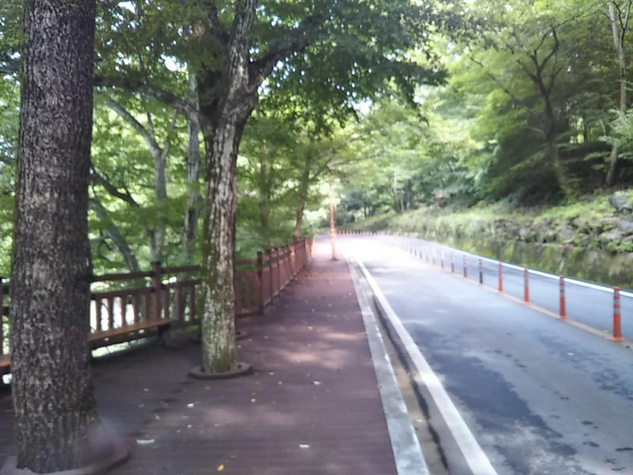 1台のバスがこの食堂の前を通り過ぎて表忠寺に向かって行った。