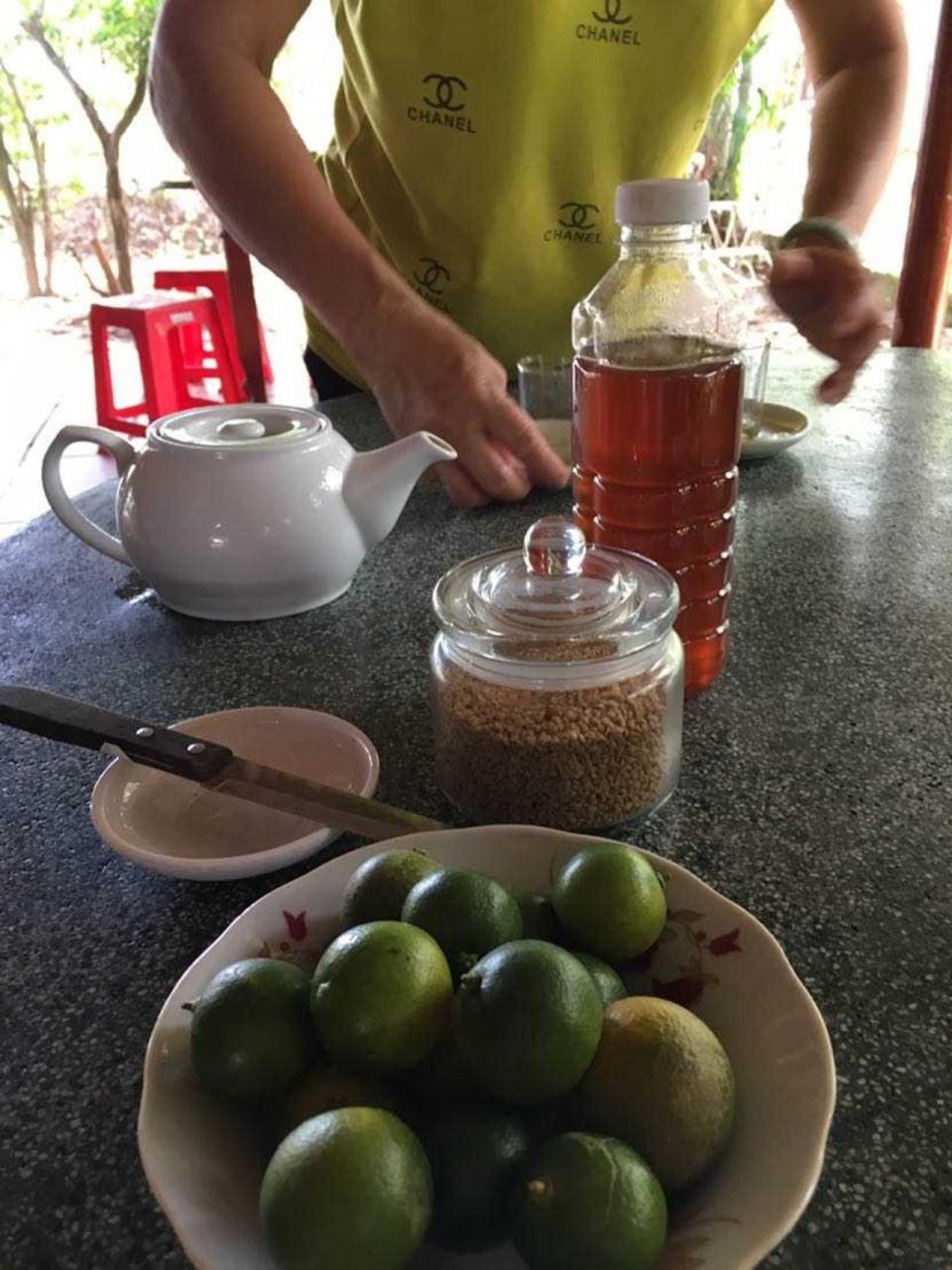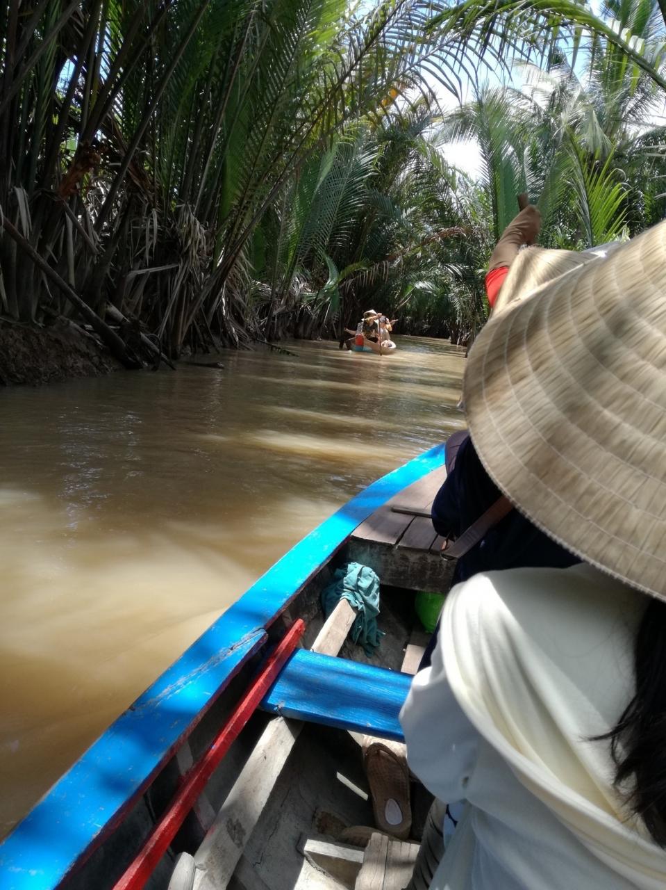 メコン川クルーズの船の上ではココナッツジュースがサービスされました